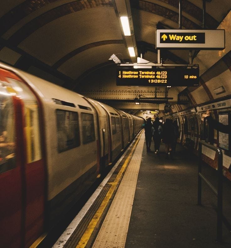 i was jolted awake when the train stopped at a particularly busy station just outside of central. the station was home to one of london’s airports and was always the most crowded part of the journey, never failing to welcome countless excited tourists hustling onto the train with their oversized suitcases and thick american accents. it always sparked a faint happiness within me, seeing their face light up at the sight of the shard pulling into view out of the right-hand window. hearing them chatter at an elevated level about the red double decker buses, how they can’t wait to see big ben and my personal favourite; “oh look, it’s the bridge from harry potter!”